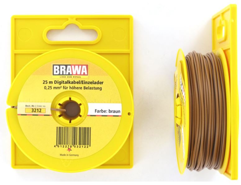 Brawa 03212 3212 Wire 0,25mm², Single-core, PVC isolation, 5A max, Cu-Conductor 14x0.15 mm, 25m Drum, Brown