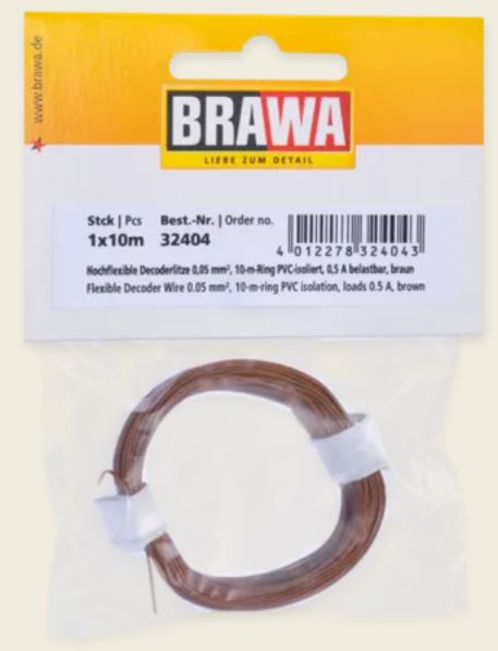 Brawa 32404 32404 Wire 0.05mm², Single-Core, PVC Insulation, 0.5A max, Cu-Conductor 26x0.05mm, 10m Ring, For Decoders, Brown