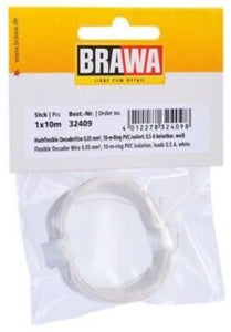 Brawa 32409 32409 Wire 0.05mm², Single-Core, PVC Insulation, 0.5A max, Cu-Conductor 26x0.05mm, 10m Ring, For Decoders, White
